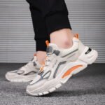 These stylish chunky sneakers feature a sleek off-white base accented with vibrant orange and gray details, delivering a bold and energetic look. Crafted with high-quality breathable mesh and synthetic leather, the upper ensures durability and comfort for all-day wear. The thick anti-slip rubber sole provides excellent grip and shock absorption, keeping your steps steady and supported. Perfect for casual outings, workouts, or streetwear fashion, these sneakers are a must-have addition to your wardrobe.