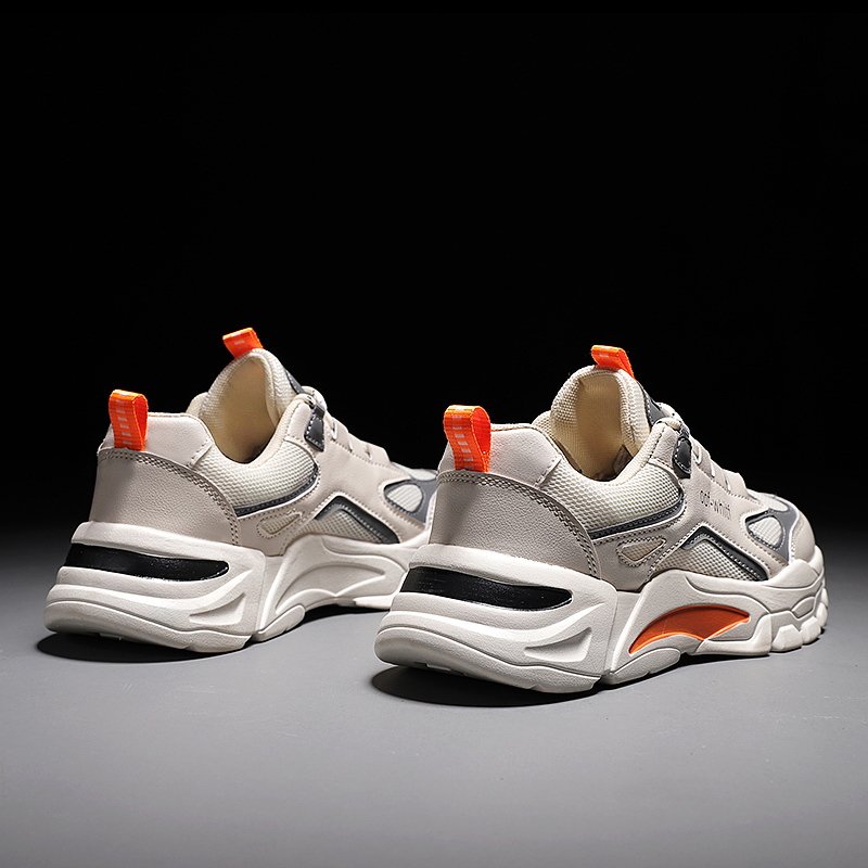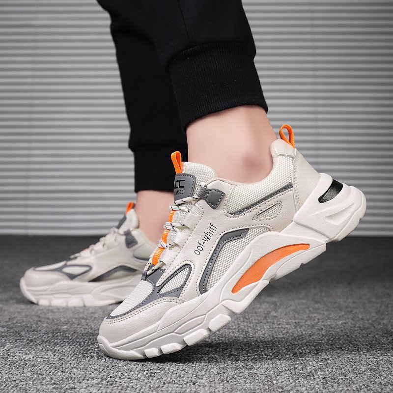 These stylish chunky sneakers feature a sleek off-white base accented with vibrant orange and gray details, delivering a bold and energetic look. Crafted with high-quality breathable mesh and synthetic leather, the upper ensures durability and comfort for all-day wear. The thick anti-slip rubber sole provides excellent grip and shock absorption, keeping your steps steady and supported. Perfect for casual outings, workouts, or streetwear fashion, these sneakers are a must-have addition to your wardrobe.