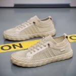 These stylishBeige sport casual shoes combine minimalist design with practical functionality, perfect for everyday wear and light activity. The upper features high-quality breathable knit fabric, ensuring a lightweight and comfortable fit while keeping your feet cool and dry. Enhanced with a reinforced protective toe and textured side panel design, these shoes offer both style and functionality. The durable rubber sole provides excellent anti-slip performance and superior traction, delivering a steady stride. With a flexible and lightweight structure, these sneakers guarantee all-day comfort.