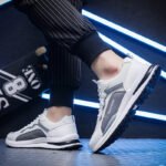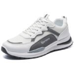 These gray and white sneakers perfectly combine classic color tones with modern design, offering a sleek yet trendy style. The upper is crafted from high-quality mesh and synthetic leather, ensuring breathability and durability, making it ideal for daily commutes or casual wear. The lightweight sole provides excellent cushioning and traction, delivering a comfortable walking experience.