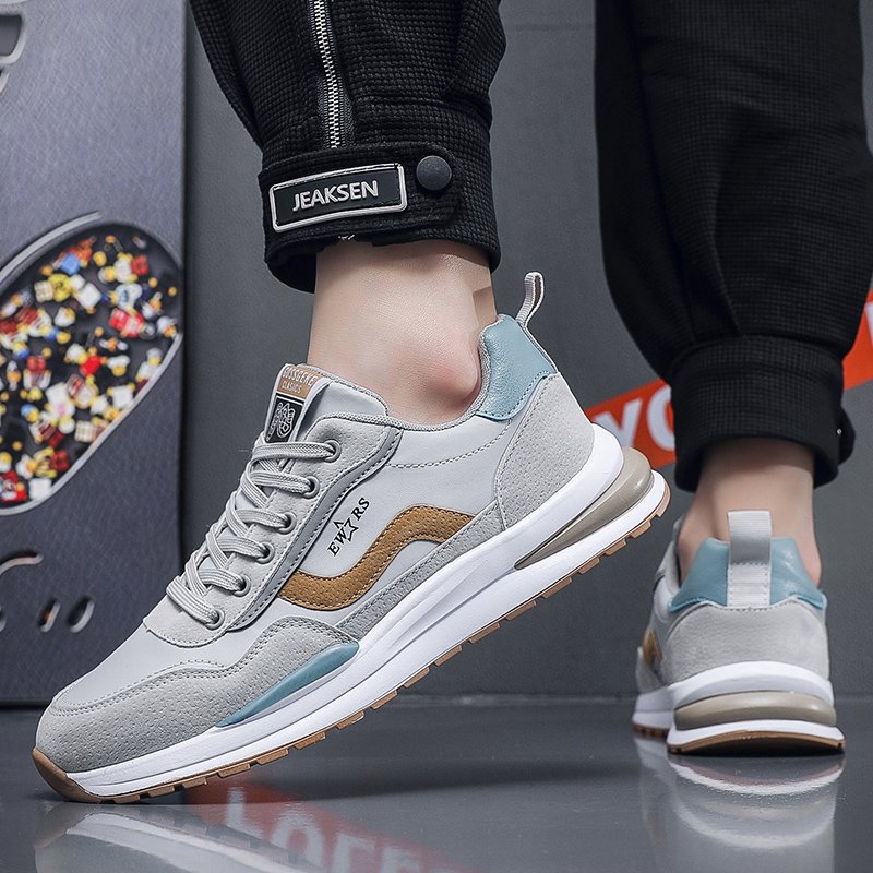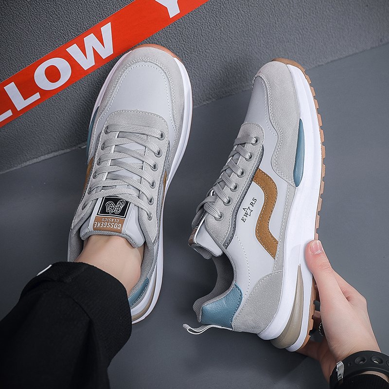 These stylish gray casual sneakers combine modern design with functional comfort, perfect for everyday wear and light activities. The upper is crafted from premium suede and synthetic materials, offering a soft, breathable, and textured feel. Complemented by brown accent details and fine stitching, they add a touch of sophistication to your style. The thick cushioned sole provides excellent support and anti-slip performance, ensuring comfort and stability in any setting.