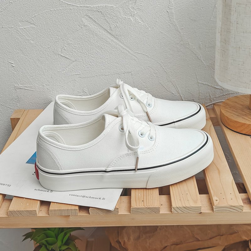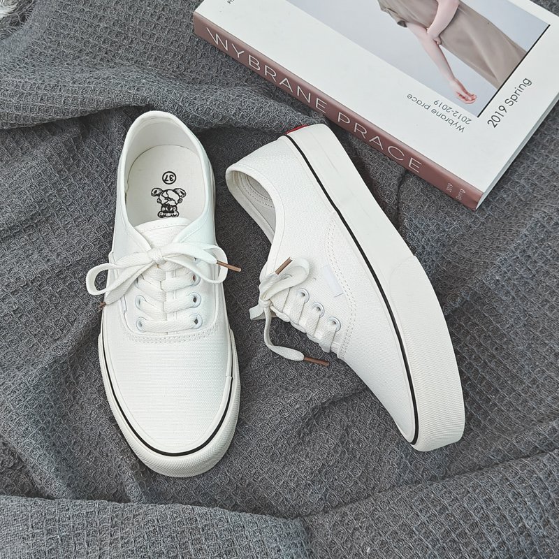 These classic white canvas shoes combine minimalist design with high-quality craftsmanship, making them the perfect go-to choice for everyday wear. The upper is crafted from premium canvas material, offering breathability and lightweight comfort for extended wear. The classic lace-up design is accented with delicate black trim, adding a touch of sophistication to the overall look. The outsole is made from durable, anti-slip rubber, providing excellent traction and stability for worry-free walking. The soft, comfortable lining conforms to your feet, ensuring a lightweight and relaxed wearing experience. Whether for casual outings, campus style, or daily commutes, these canvas shoes pair effortlessly with any outfit, delivering timeless style with ease.