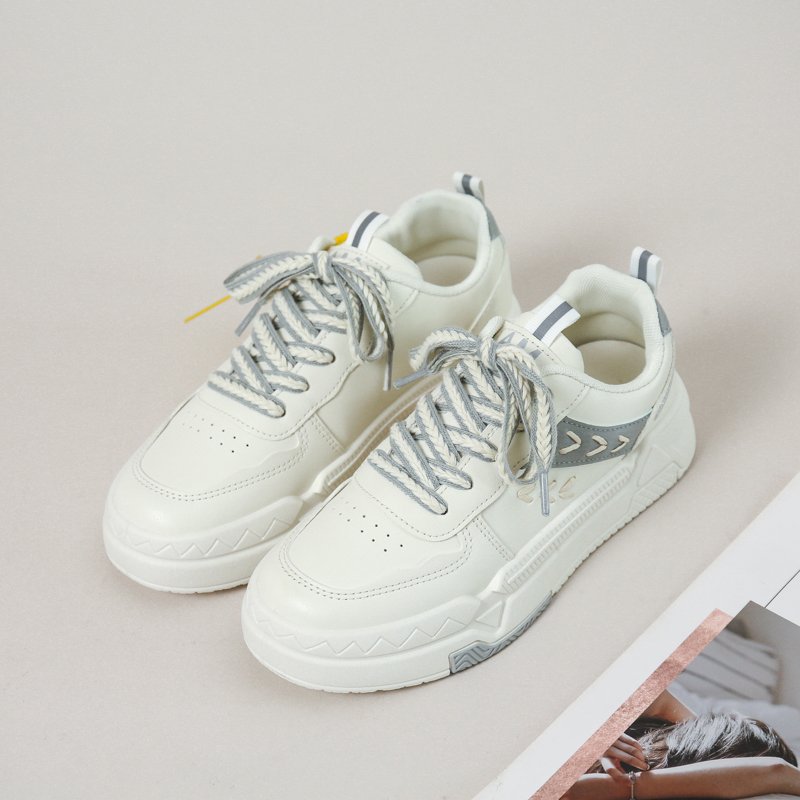 These stylish chunky casual sneakers feature a clean white design accented with subtle gray details, delivering a modern and trendy look. Made with premium synthetic leather, the upper is durable, breathable, and easy to maintain. The thick cushioned sole provides excellent shock absorption and support, ensuring comfort with every step. Perfect for commuting, casual outings, or street-style fashion, these versatile sneakers effortlessly elevate your style.