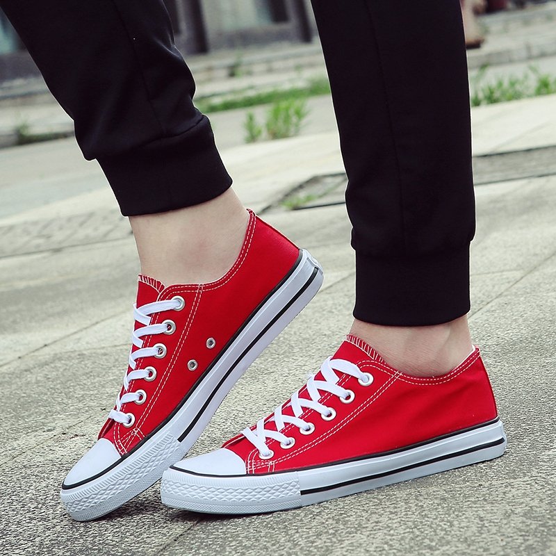 This classic red low-top canvas shoe is crafted with premium canvas material, offering lightweight breathability for all-day comfort. The durable rubber sole provides excellent grip and wear resistance, making it suitable for various occasions. Its minimalist design, featuring white laces and a rubber toe cap, adds a touch of style and pairs effortlessly with jeans, shorts, or casual skirts. Combining aesthetics and practicality, this pair is the perfect choice for daily wear, travel, or casual activities, giving your steps confidence and energy!