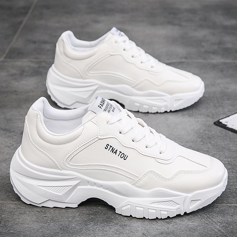 These all-white sneakers combine simplicity and style, featuring a chunky sole that adds a trendy touch while providing excellent support. Perfect for everyday wear or casual activities, the upper is made of high-quality synthetic leather that is durable, easy to clean, and breathable for all-day comfort. The sleek, minimalist design makes it an ideal choice for those who value both fashion and functionality.
