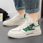 This stylish high-top sneaker stands out with its unique green and white color combination and trendy design, perfectly blending modern street fashion with a comfortable wearing experience. The upper is made of high-quality leather material with fine stitching craftsmanship for long-lasting durability. The thick rubber outsole offers excellent anti-slip and shock absorption performance, making it suitable for daily wear or sports activities. The breathable lining ensures all-day dryness and comfort, while the high-top design provides ankle support and highlights a bold, trendy style. Whether paired with jeans, sportswear, or casual outfits, this shoe is a versatile wardrobe essential that keeps you effortlessly at the forefront of fashion!