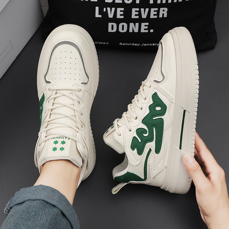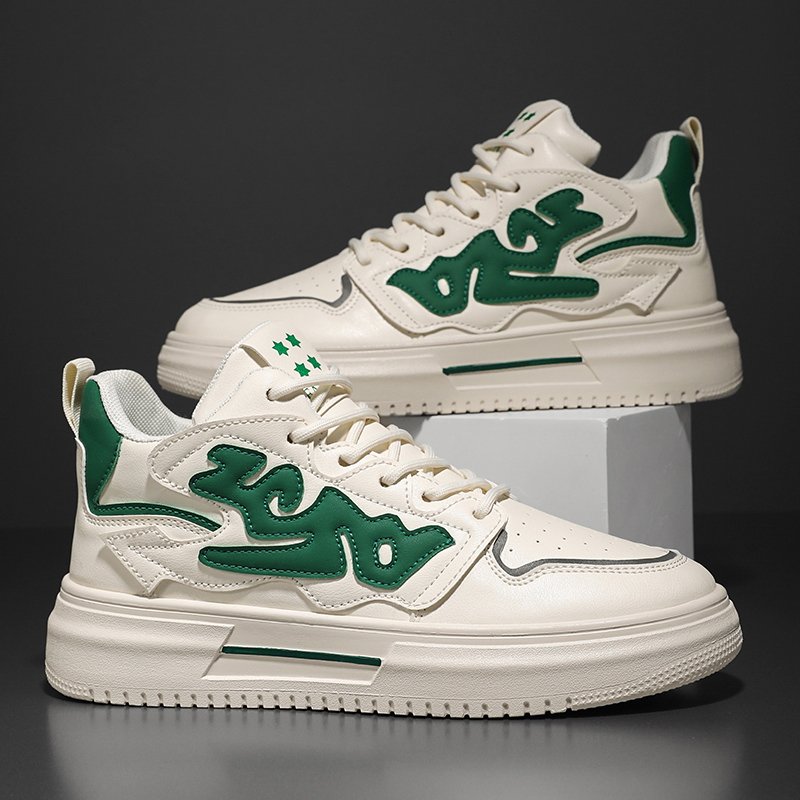 This stylish high-top sneaker stands out with its unique green and white color combination and trendy design, perfectly blending modern street fashion with a comfortable wearing experience. The upper is made of high-quality leather material with fine stitching craftsmanship for long-lasting durability. The thick rubber outsole offers excellent anti-slip and shock absorption performance, making it suitable for daily wear or sports activities. The breathable lining ensures all-day dryness and comfort, while the high-top design provides ankle support and highlights a bold, trendy style. Whether paired with jeans, sportswear, or casual outfits, this shoe is a versatile wardrobe essential that keeps you effortlessly at the forefront of fashion!