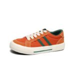 These retro-style casual shoes feature a vibrant orange base accented with classic green stripes, showcasing a unique blend of fashion and streetwear appeal. Crafted from premium canvas material, they are breathable, durable, and comfortable for all-day wear. The sturdy, anti-slip rubber sole ensures excellent grip and wear resistance, while the soft insole and lightweight design provide lasting comfort. Perfect for daily outings, campus life, or street fashion, these sneakers effortlessly complement any outfit, making them a must-have addition to your wardrobe.
