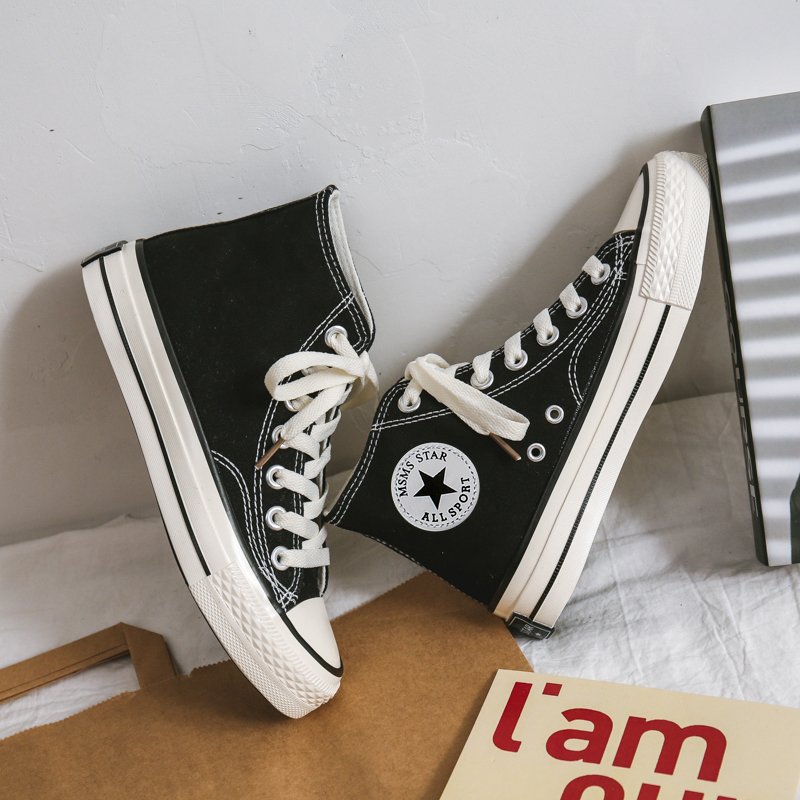 These black high-top canvas shoes blend classic style with modern comfort, making them the perfect choice for everyday wear. Timeless, versatile, and durable – a must-have addition to your footwear collection.