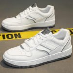 This stylish and classic white sneaker combines premium synthetic leather with a minimalist design and modern trends, delivering an ultimate fashion look. The breathable upper ensures all-day comfort, while the durable anti-slip rubber outsole provides stability and safety with every step. Its lightweight design and cushioned insole offer superior shock absorption, reducing fatigue during extended wear. Whether for daily casual wear, commuting, or light sports, these versatile sneakers seamlessly complement your style and are a must-have addition to your wardrobe.