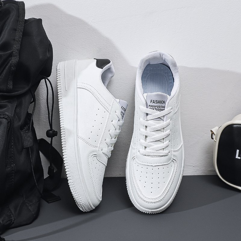 These classic all-white casual sneakers feature a minimalist and stylish design, combining comfort and practicality to suit any occasion. The upper is crafted from high-quality PU leather, making it soft, durable, and easy to clean. The perforated design on both sides enhances breathability, keeping your feet dry and comfortable for long periods. The lightweight rubber sole offers excellent anti-slip performance and durability, ensuring confident and steady steps with every stride.