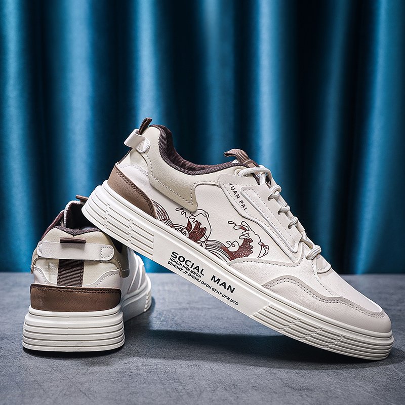 These sneakers perfectly combine style and comfort, designed for individuals who pursue both personality and trends. The upper is made of premium synthetic material, lightweight and breathable, paired with a classic white design for a clean and elegant look. The unique ink-inspired pattern on the side blends traditional and modern aesthetics, showcasing artistic flair and refined taste.