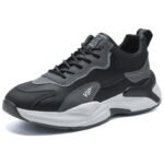 These sneakers feature a classic black and gray color combination, exuding understated luxury with a sleek, modern design. The upper is crafted from high-quality synthetic leather, offering durability, comfort, and easy maintenance, making it ideal for everyday wear. The lightweight sole provides exceptional cushioning and grip, making these shoes a perfect choice for commuting, outings, or casual styling.