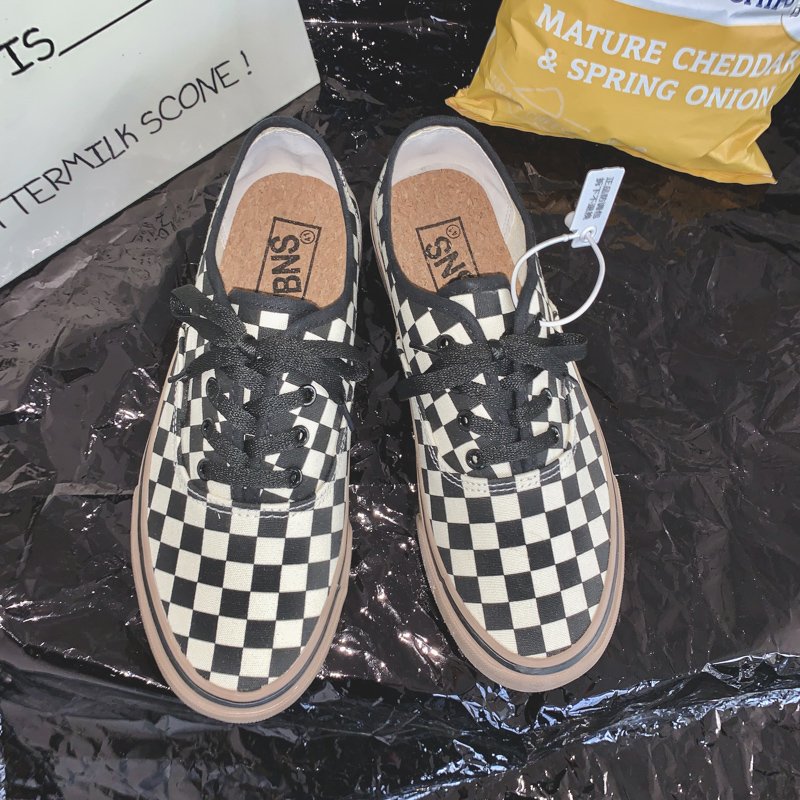 Niche Plaid Low-Top Canvas Shoes with round Toe New Student Street Shot Skateboard Casual Shoes-vt77