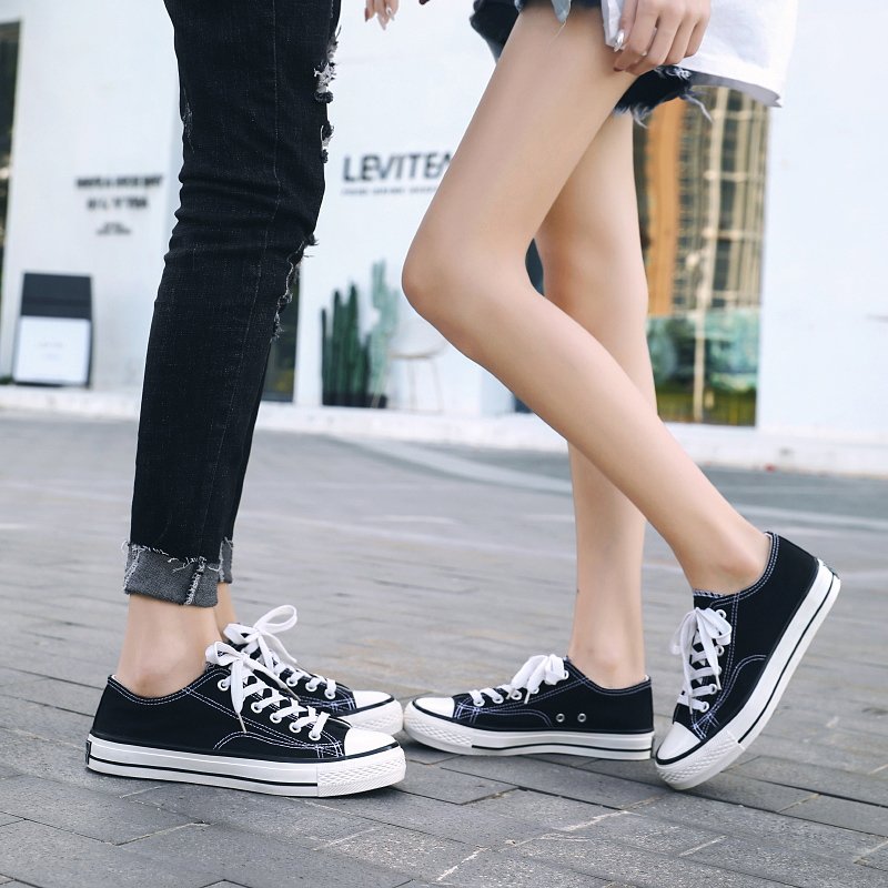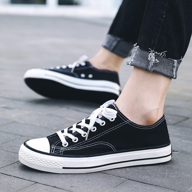These classic black canvas shoes are made of high-quality canvas material, providing a soft, comfortable, and highly breathable experience, ideal for long hours of wear. The simple and elegant design combined with a durable rubber sole offers reliable anti-slip protection for your daily activities. Whether for casual streetwear, campus life, or outdoor adventures, these versatile canvas shoes can easily match any style, adding a touch of fashion to your look. The delicate stitching details on the upper and sole showcase exceptional craftsmanship, allowing you to express your unique style effortlessly in any setting.